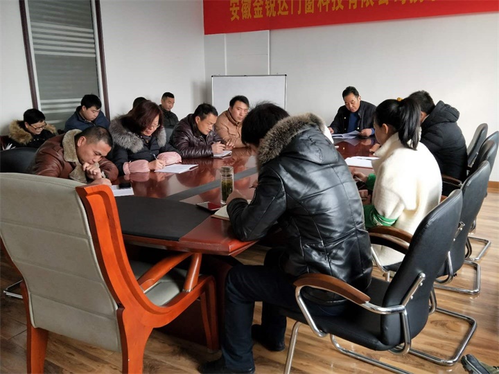 2018年2月9日,安徽金銳達(dá)門窗科技有限公司在三樓會議室召開2017年年終總結(jié)會議,公司總經(jīng)理張勇和各部門負(fù)責(zé)人參加了會議,會議由總經(jīng)理張勇主持。首先,張總就公司2017年度的經(jīng)營指標(biāo)完成情況、生產(chǎn)完成情況、營收完成情況進(jìn)行總結(jié)匯報(bào),對2017年取得的工作成績給予充分肯定。同時(shí),張總要求各部門要切實(shí)履職盡責(zé),更加注重工作的細(xì)微之處,群策群力,以務(wù)實(shí)的態(tài)度完成來年的工作目標(biāo)。張總還指出2017年由我公司承攬的工程中出現(xiàn)的問題,要求員工加以改正,在18年的工作中將這些問題解決并杜絕。